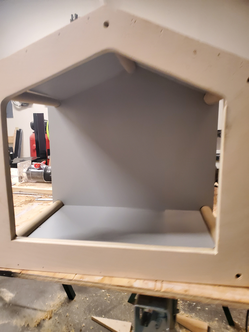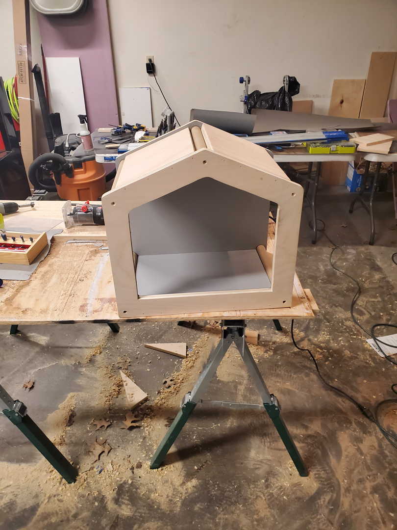 I started by drawing out rough house shape on scrap pieces of plywood. Cut out with jigsaw, sanded my edges smooth and then rounded over the corners.